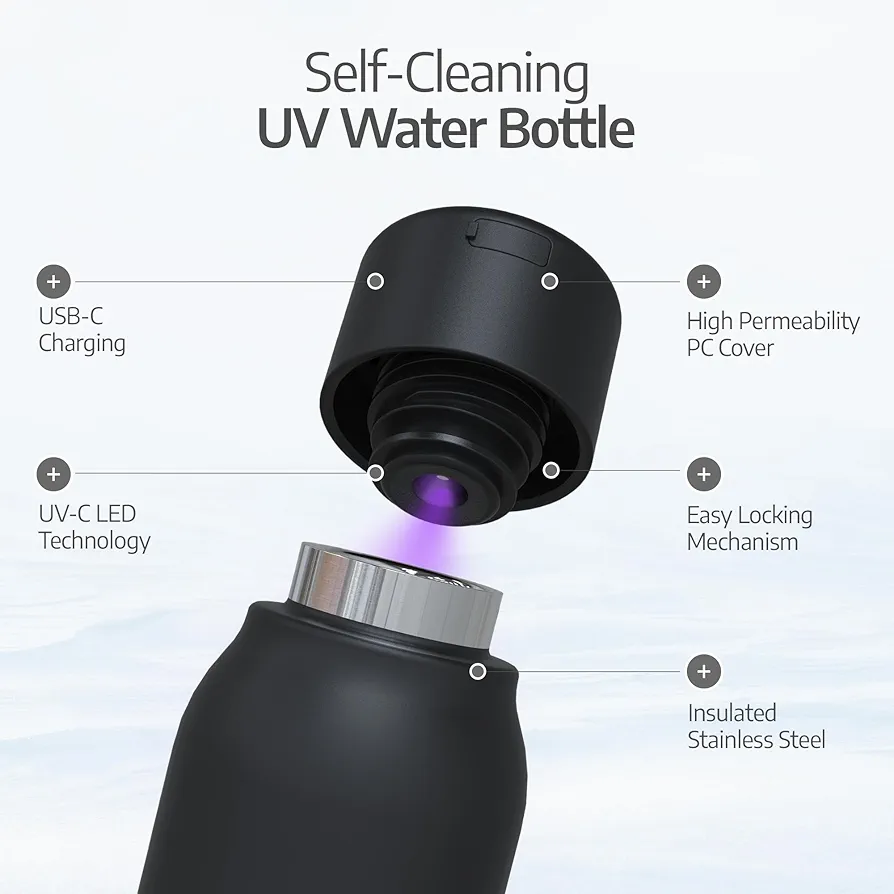 This portable bottle uses advanced UV-C technology to help neutralize harmful bacteria and microorganisms in just minutes. With the press of a button, the built-in UV light purifies your water — no chemicals, no replacement filters, and no complicated setup required.